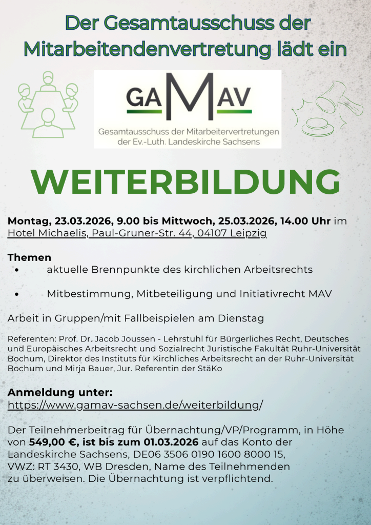 Weiterbildung des Gesamtausschuss der Mitarbeitendenvertretungen vom 23.03.2026 – 25.03.2026 in Leipzig